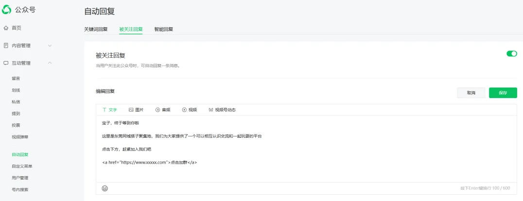 至于具体的搭建过程,这里就不详细讲了,教程里讲得比我口头说的清楚多了,看不懂的地方反复看两遍课程就能解决了。等系统搭建好,记得和自己的公众号做个对接,后续运营就能省不少心。只要有人关注公众号,会自动收到进群指引;就算没自动触发,回复指定的关键词,也能马上收到进群链接,整个流程特别顺畅。
