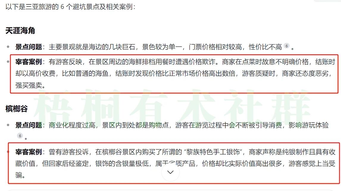 接下来咱们说说这类内容该怎么创作,而且写出来的内容绝对能申请原创。因为咱们用 AI 写的每一篇景点吐槽文,都融入了真实的游客被宰、被坑的案例,这些案例还都是曾经上过新闻的。大家可以看看下面这些游客在某景区或某地方被坑的例子。那怎么才能让 AI 把这些真实案例写到文章里去呢?方法很简单,就是给 AI 加一句提示词:结合以往游客被宰、被坑、被骗的真实新闻案例,填充到文章中,而且填充的案例一定要经过润色、改写,不能和新闻原文一模一样。