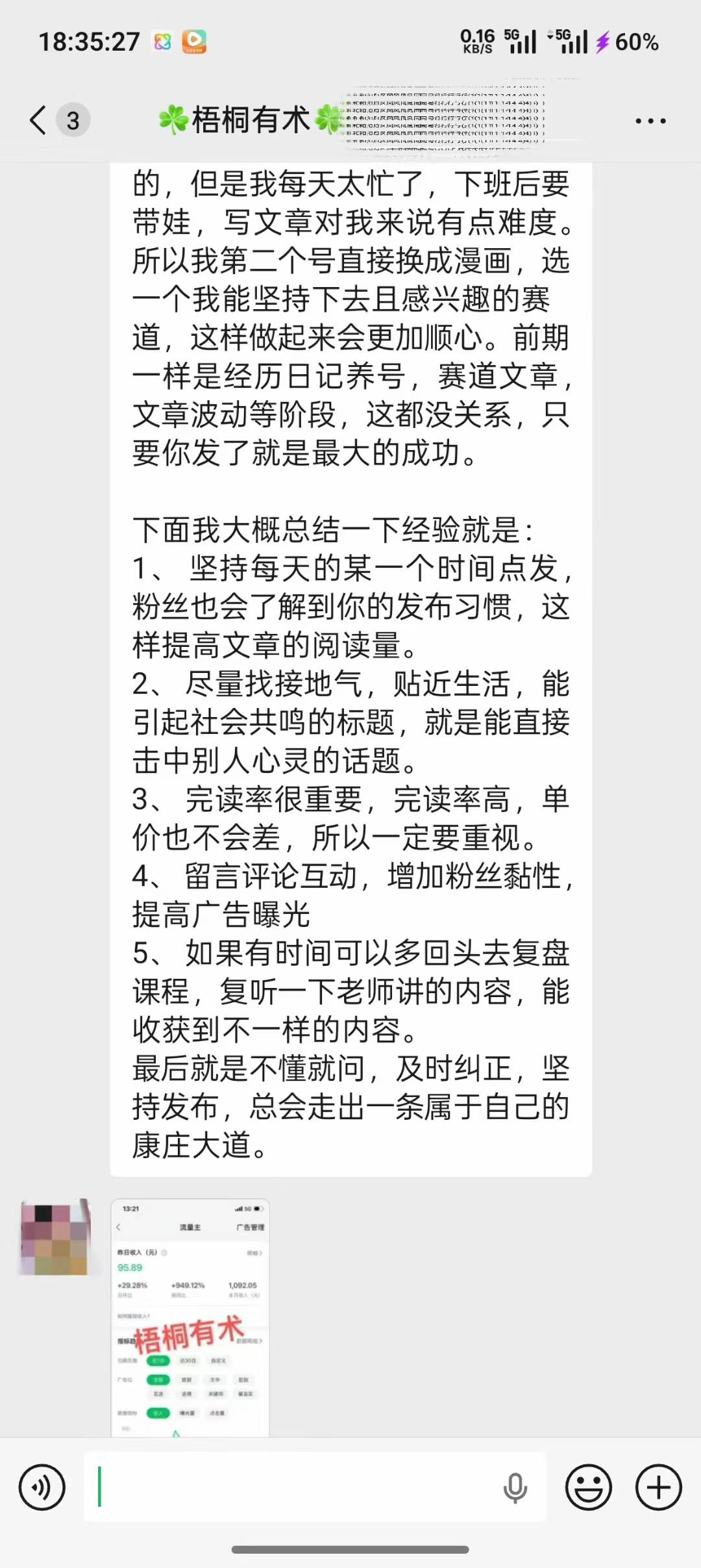 社群学员直线公众号流量主平均每天100多,做的是老物件赛道,他的经验分享,大家可以学习借鉴。新手小白做项目一定不要急躁,沉得住气稳住心态,跟着课程步骤走,听话照做,执行力拉满多上点心,就能拿到结果。...