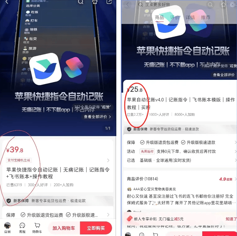 我仔细研究了他的店铺,发现有两款卖得好的产品,内容其实差不多,就是定价不一样,一个 25.8 元,一个 39.9 元,光这两款加起来就赚了 81.9 万。