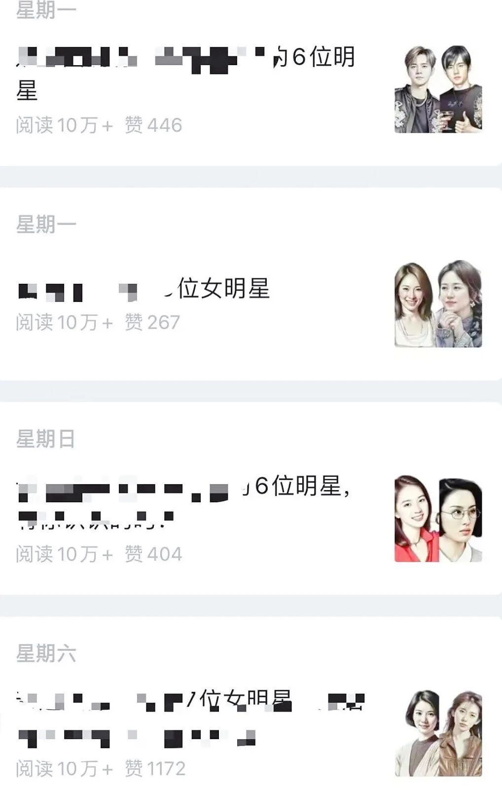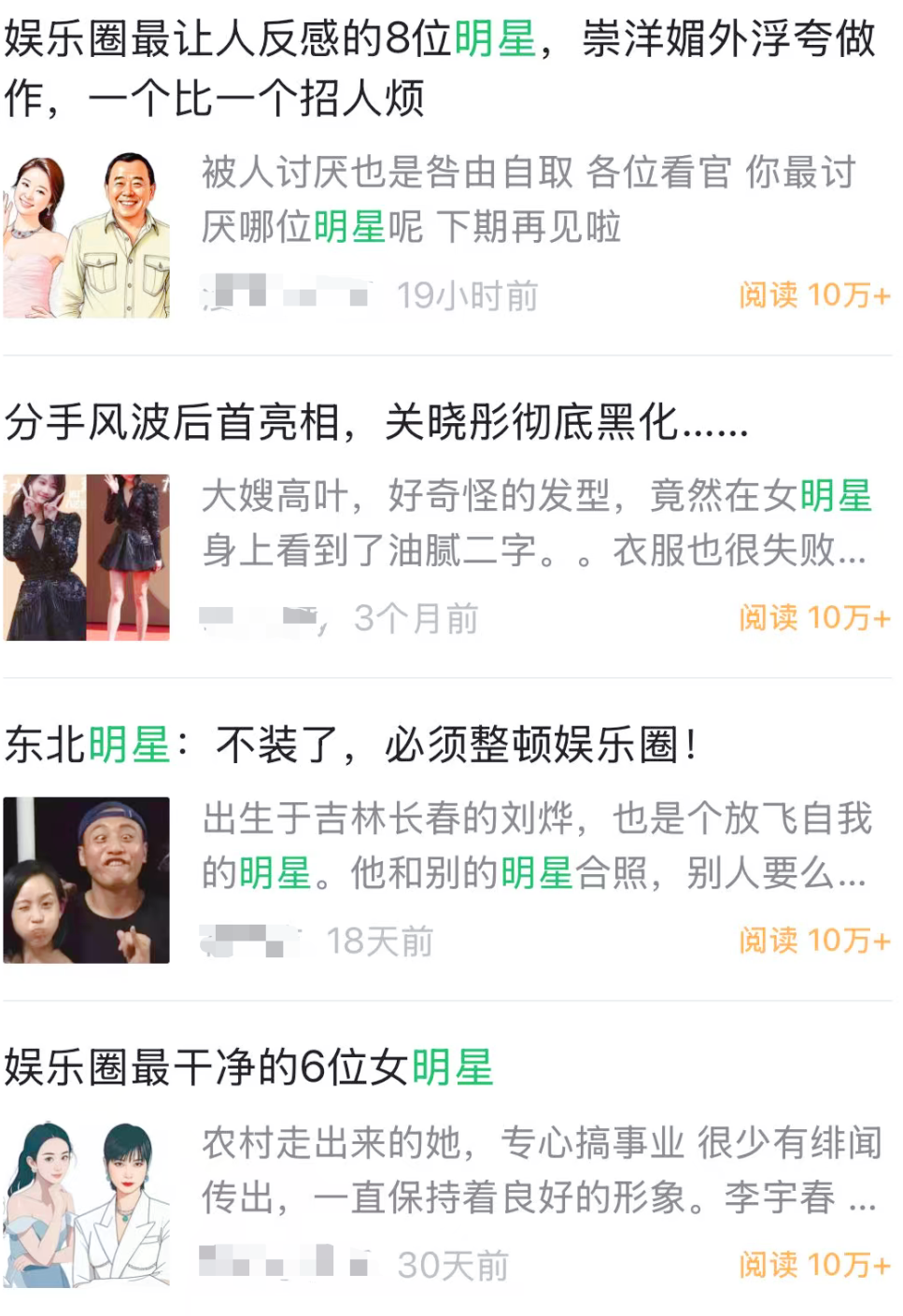 打开微信的 “搜一搜”,搜些和 “明星” 相关的词,比如 “周杰伦”“迪丽热巴”“演唱会” 之类的。在搜出来的结果里,挑那些近期(最好是1-2周左右,这样热度高些,流量也就是大)阅读量 在5 万甚至 10 万以上的公众号爆文。